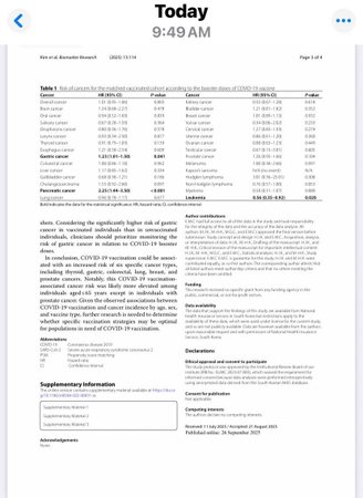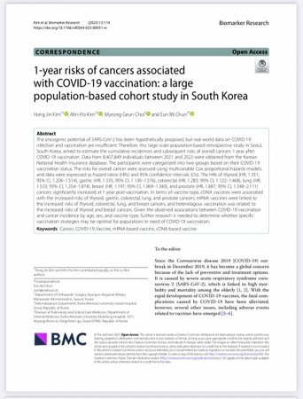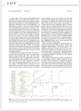 “Studimi me i fundit dhe i pari i ketij lloji si nje studim epidemiologjik nga prof Kim et al, dhe i kryer ne nje popullate prej me shume se 8 milion njerezish, ne Korene e Jugut, nga vendet e para te vaksinuara ne bote me vaksinat gjenetike te Covid19, tashme evidenton nje rritje prej te pakten 50% te tumoreve ne individet e vaksinuar kundrejt te pavaksinuarve! Tumoret qe ndikohen me shume jane kanceri i tiroides, i stomakut, mushkerive, i zorres se trashe, gjirit, ovareve etj.