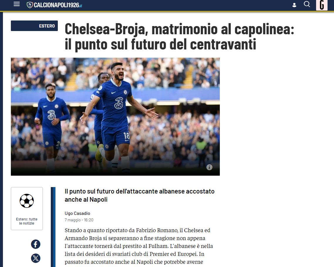 Diskutimi është i njëjtë edhe për Napolin, me blutë që në fund të këtij sezoni duhet të gjejnë një zëvendësues për Osimhen. Napoli mund të ketë një avantazh në raport me dy ekipet e tjerë të Serie A, nëse nigeriani vendos të transferohet te Chelsea. Në këtë rast, blutë do të përfshinin kartonin e Brojës në negociata për të ulur kostot e këtij transferimi, pasi De Laurentiis nuk heq dorë nga Osimhen pa të paktën 120 milionë euro.