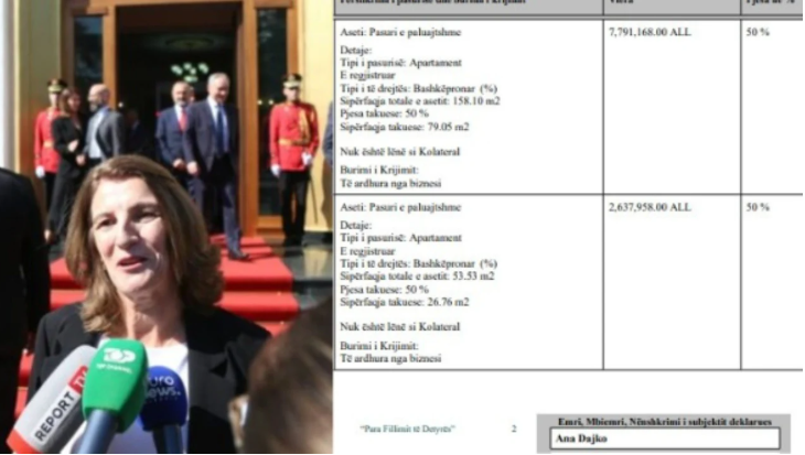 Sikur çdo deputet, edhe Dajko ka plotësuar formularin e deklarimit të pasurisë, e cila vlerësohet në rreth 1.19 milionë euro, pasuri e përbashkët me bashkëshortin.