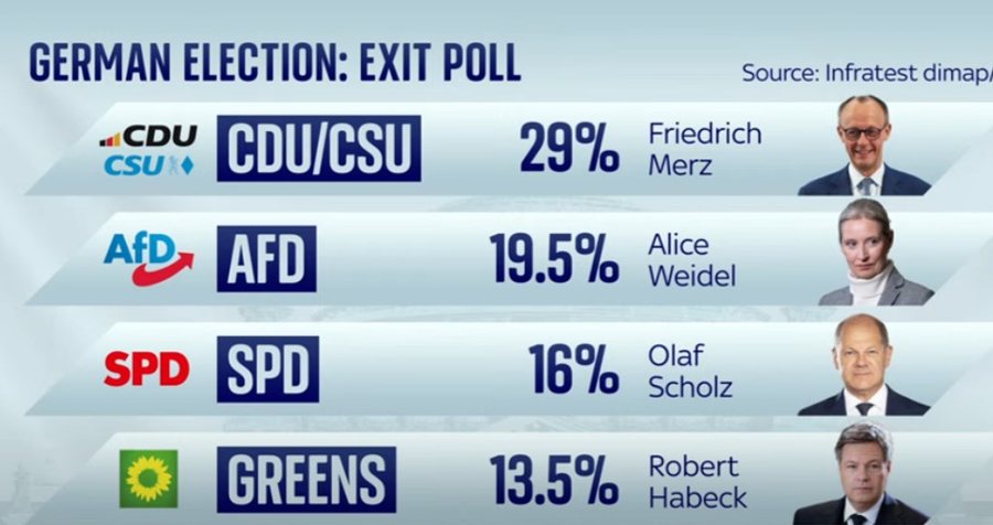 Nëse këto parashikime fillestare qëndrojnë, atëhere kandidati i CDU/CSU, Friedrich Merz, mund të jetë kryesuesi për të pasuar kancelarin Olaf Scholz. Qeveria në largim e Scholz do të qëndrojë në detyrë përkohësisht, derisa Bundestag të zgjedhë kancelarin e ri.