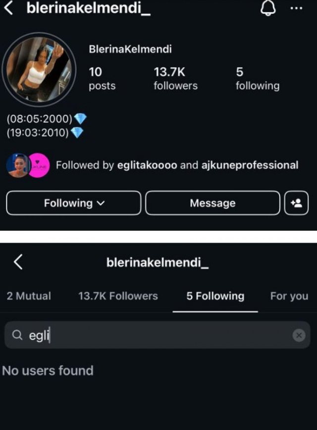 Duke hulumtuar në profilin e saj pamë që Egli po e ndjek motrën e Gjestit ndërsa kjo e fundit jo.