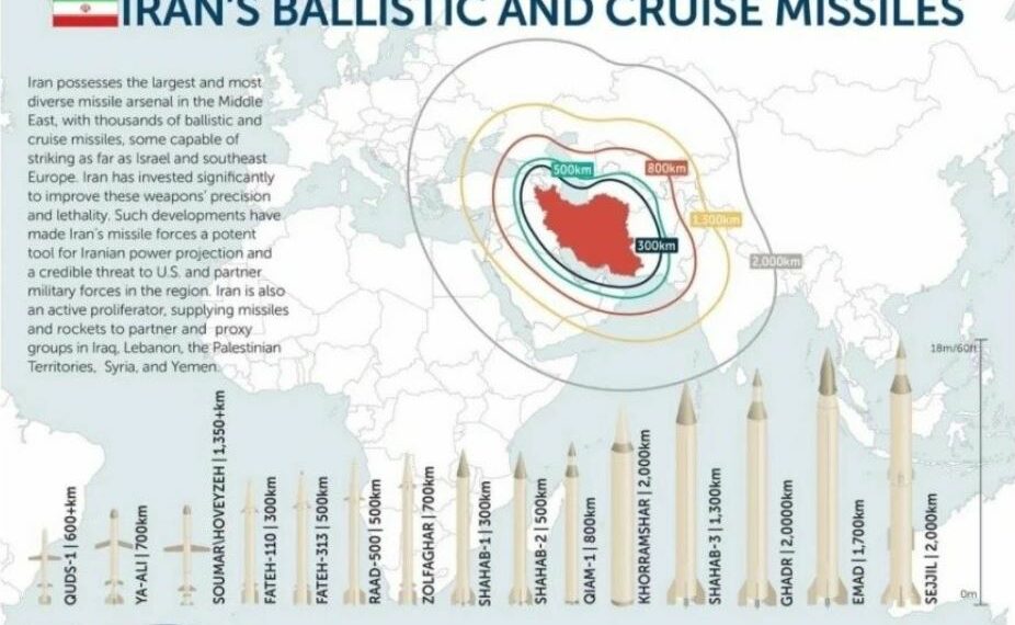 Programi raketor i Iranit ka kapacitete që shtrihen përtej Lindjes së Mesme dhe prekin drejtpërdrejt territorin europian. Sipas një grafiku të publikuar nga qendra amerikane e analizave Center for Strategic and International Studies (CSIS), raketat balistike dhe ato të tipit cruise të Iranit krijojnë unaza goditjeje nga 300 deri në 2.000 kilometra, duke përfshirë një pjesë të konsiderueshme të Europës Juglindore.