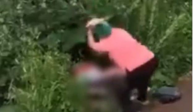 Momenti kur e moshuara gj uan burrin në të pasme me shkop, është kapur nga disa kamera sigurie që ndodheshin në një ndërtesë aty pranë.