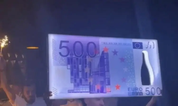 Kur dikush nga klientët porosit pije në vlerë prej 500 euro, pijet i dërgohen bashkë me një pankartë me shumën që paguhet.