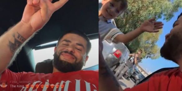 Ndërkohë teksa ishte duke udhëtuar me makinë, i ka kërkuar mikut të tij që të ndalojë menjëherë makinë, ka hapur derën dhe ka përqafuar një djalë të vogël, i cili i kërkoi që të bënte foto.